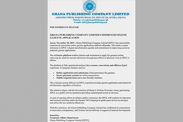 GHANA PUBLISHING COMPANY LIMITED COMMENCES ONLINE GAZETTE APPLICATION